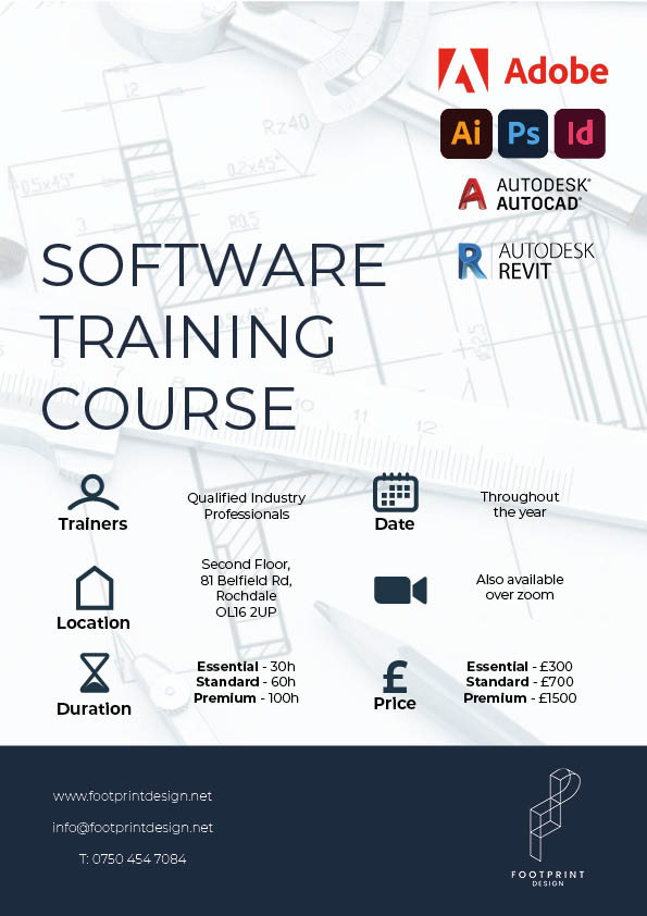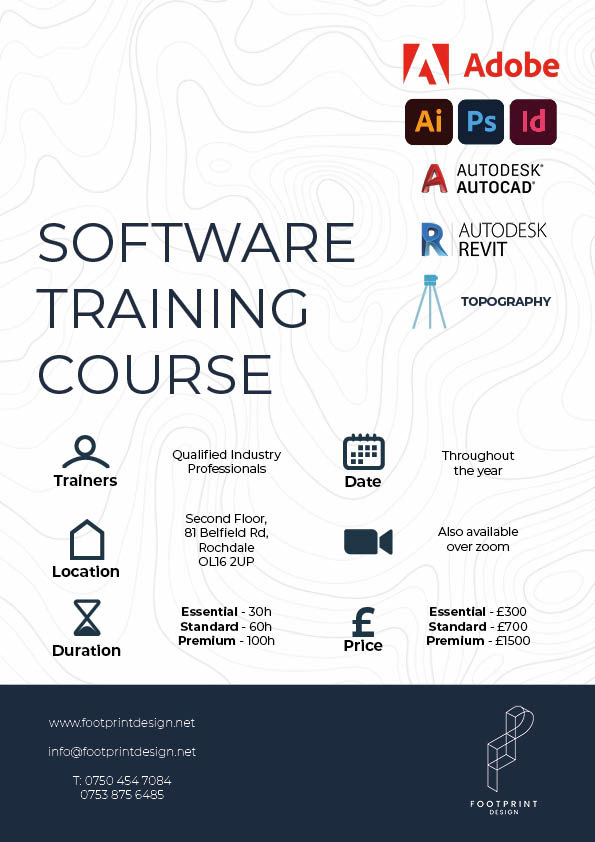Footprint Design are starting to offer training courses for programmes such as Adobe, Topography and Autodesk. I created the posters for them that they will post on socials.